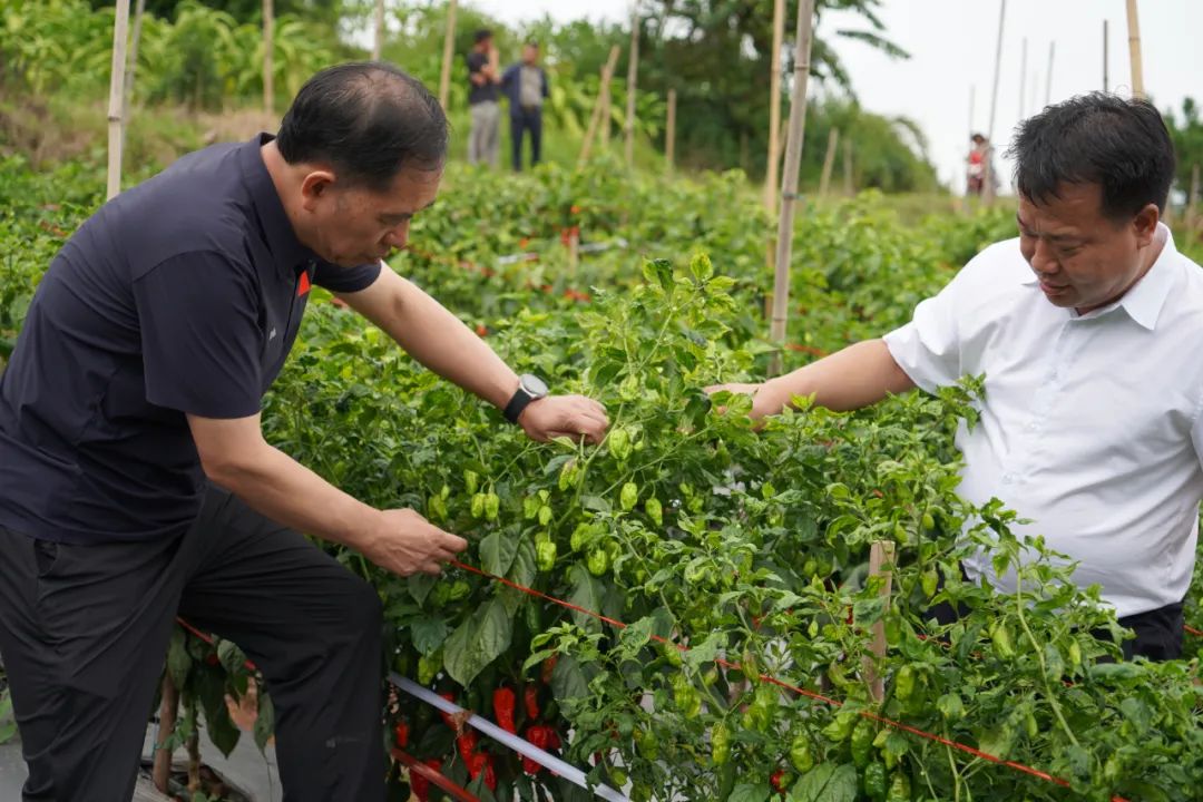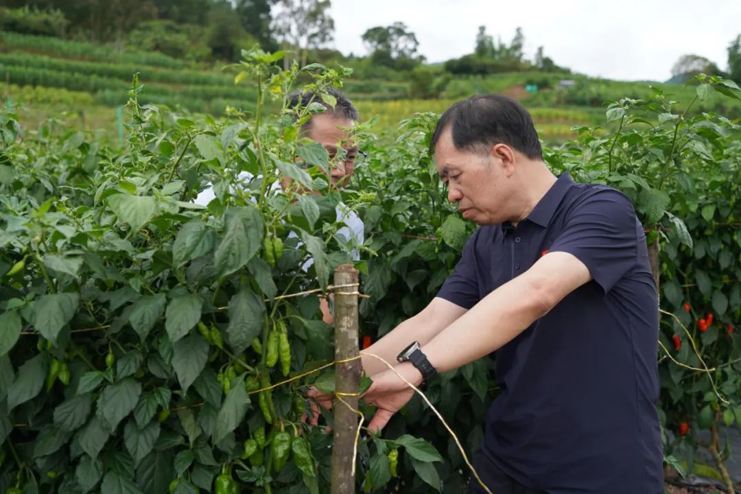 7月31日,中国工程院院士、湖南农业大学校长邹学校团队一行到云南普洱辣椒示范基地调研指导,查看新选育的高辣工业辣椒新品种“湘涮辣七号”示范推广情况。该品种以超高辣度、强抗病性和稳产优势,成为云南辣椒产量最高的高辣辣椒品种之一,为我国辣椒素产业提供了优质原料,显著提升了国际竞争力。