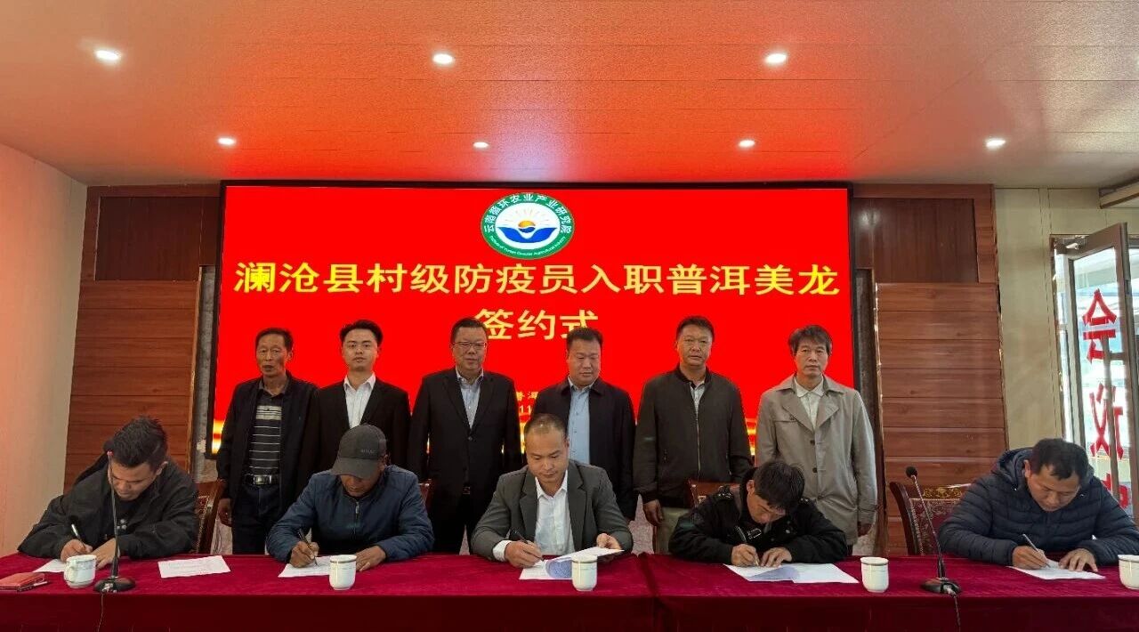 本次会上还进行了村级防疫员入职签约式,14名来自澜沧县各乡镇的防疫员正式加入普洱美龙公司,为湖羊等畜牧产业持续发展提供技术、推广和服务。