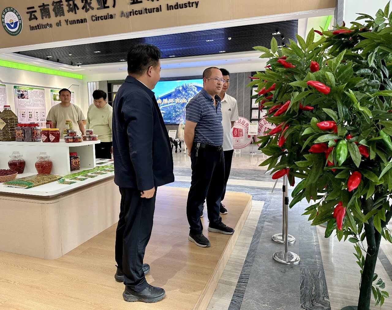 胡兴华书记一行实地参观了研究院科研成果展厅,详细了解了研究院在辣椒、畜牧、茶叶、水产、农产品加工及循环农业等领域的科研成果。