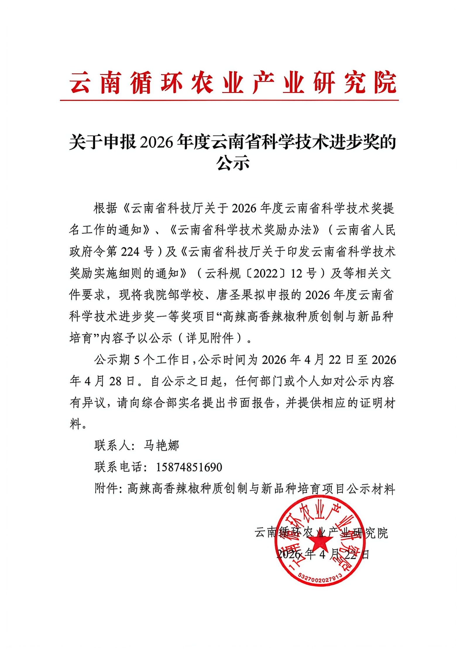 高辣高香辣椒种质创制与新品种培育项目公示材料