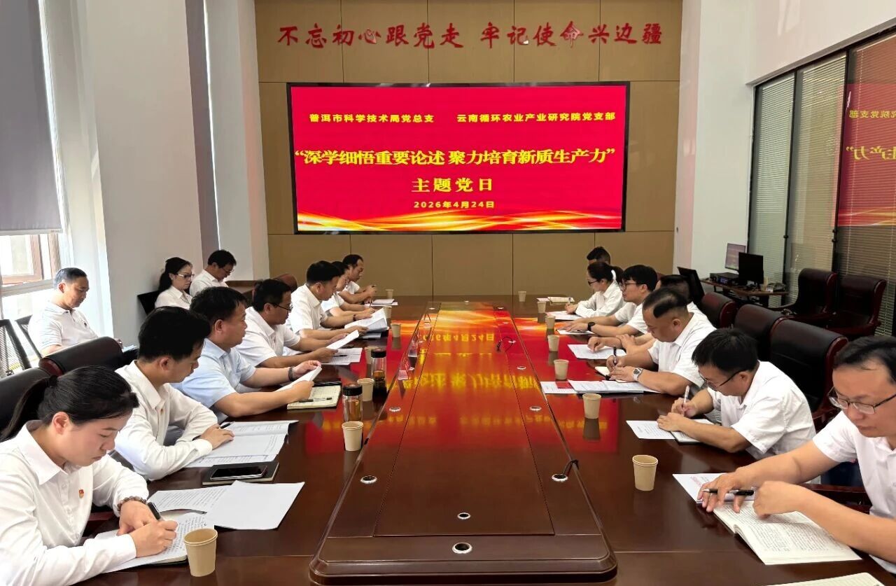 2026年4月24日,中共普洱市科学技术局总支部委员会与中共云南循环农业产业研究院支部委员会在研究院联合开展“深学细悟重要论述 聚力培育新质生产力”主题党日。